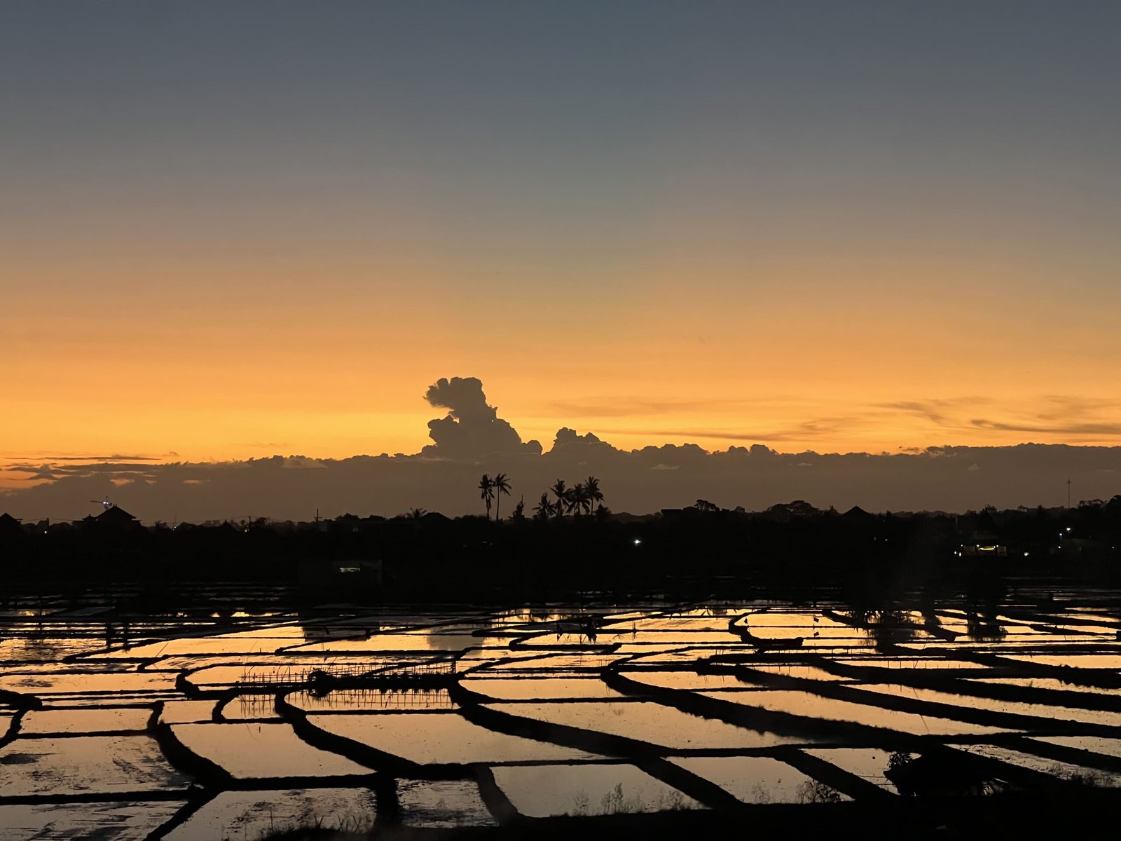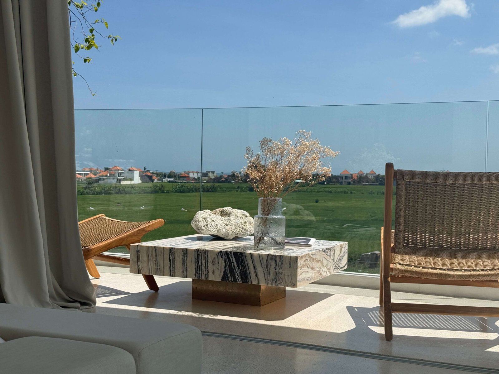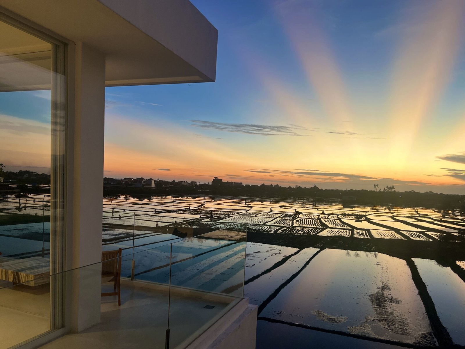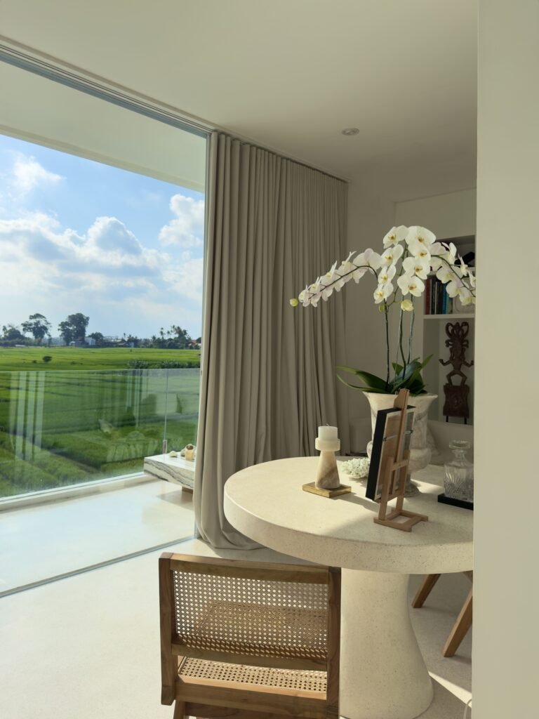 Taking up the entire top floor of the house, this master bedroom is not a bedroom. It’s a penthouse apartment with a sweeping view of rice fields, volcanoes, and ocean from every angle.