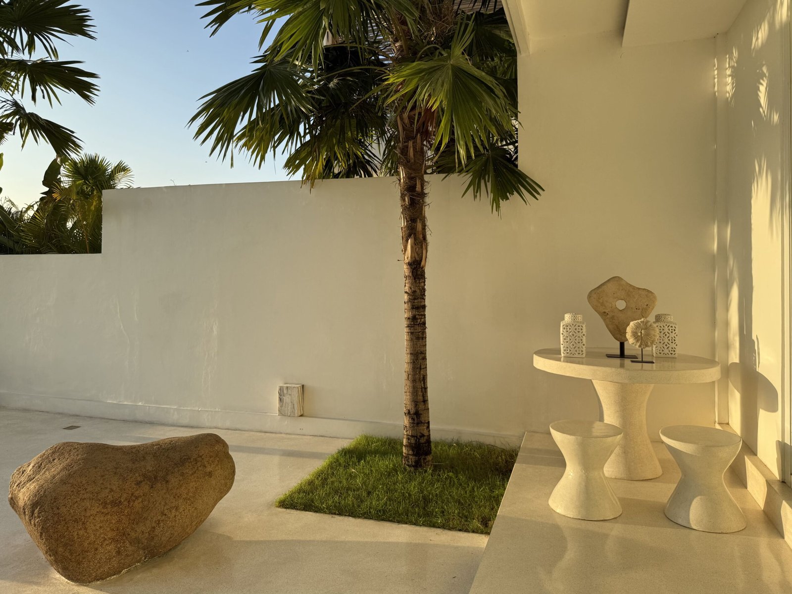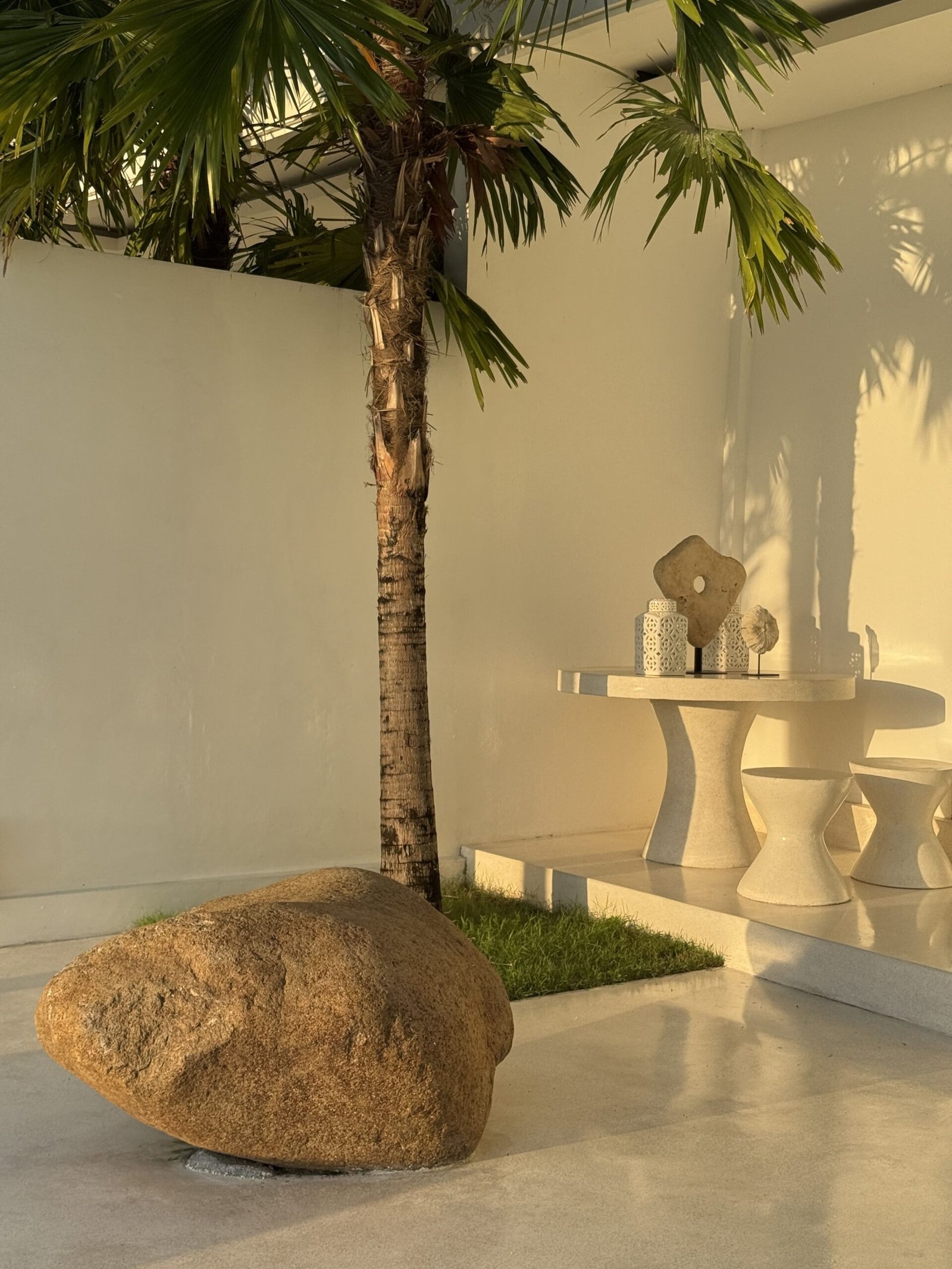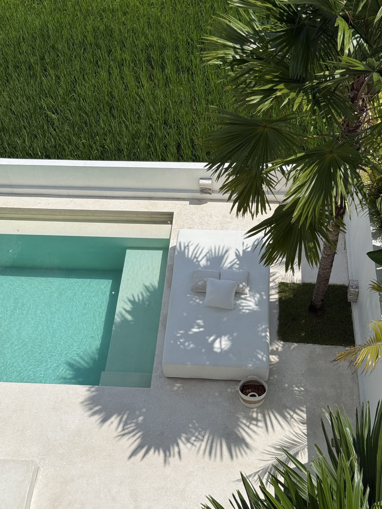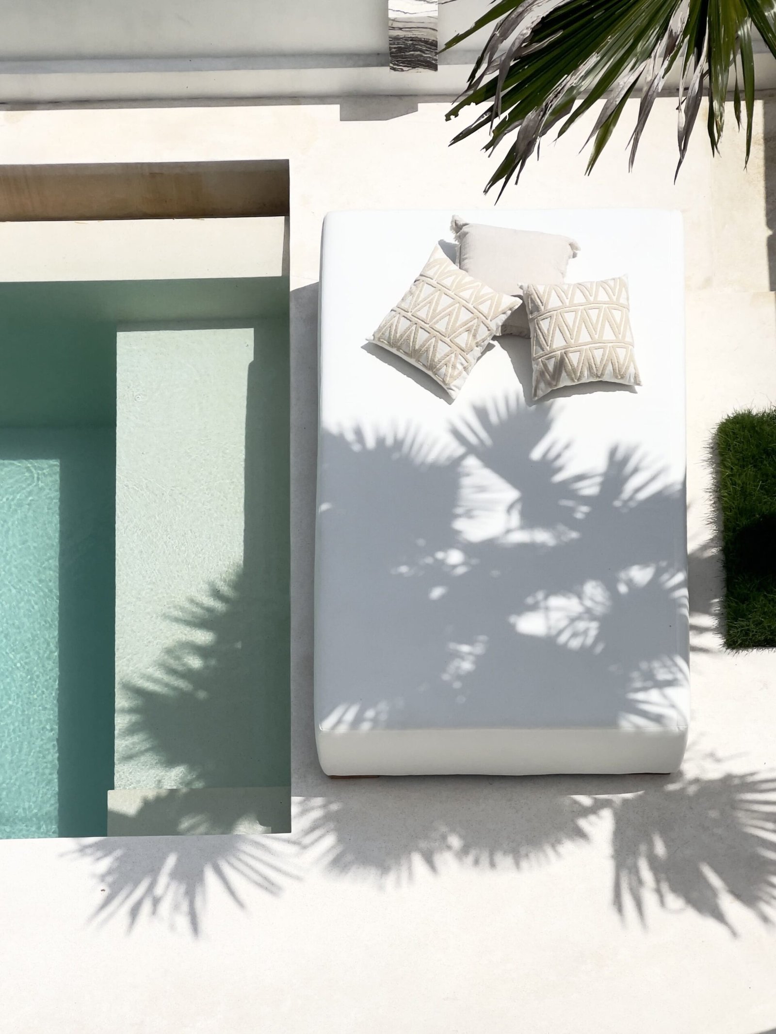 In the living room, the dining room, the stairs, the terrace… even inside the pool. There is only one surface and that is a polished, soft white terrace.