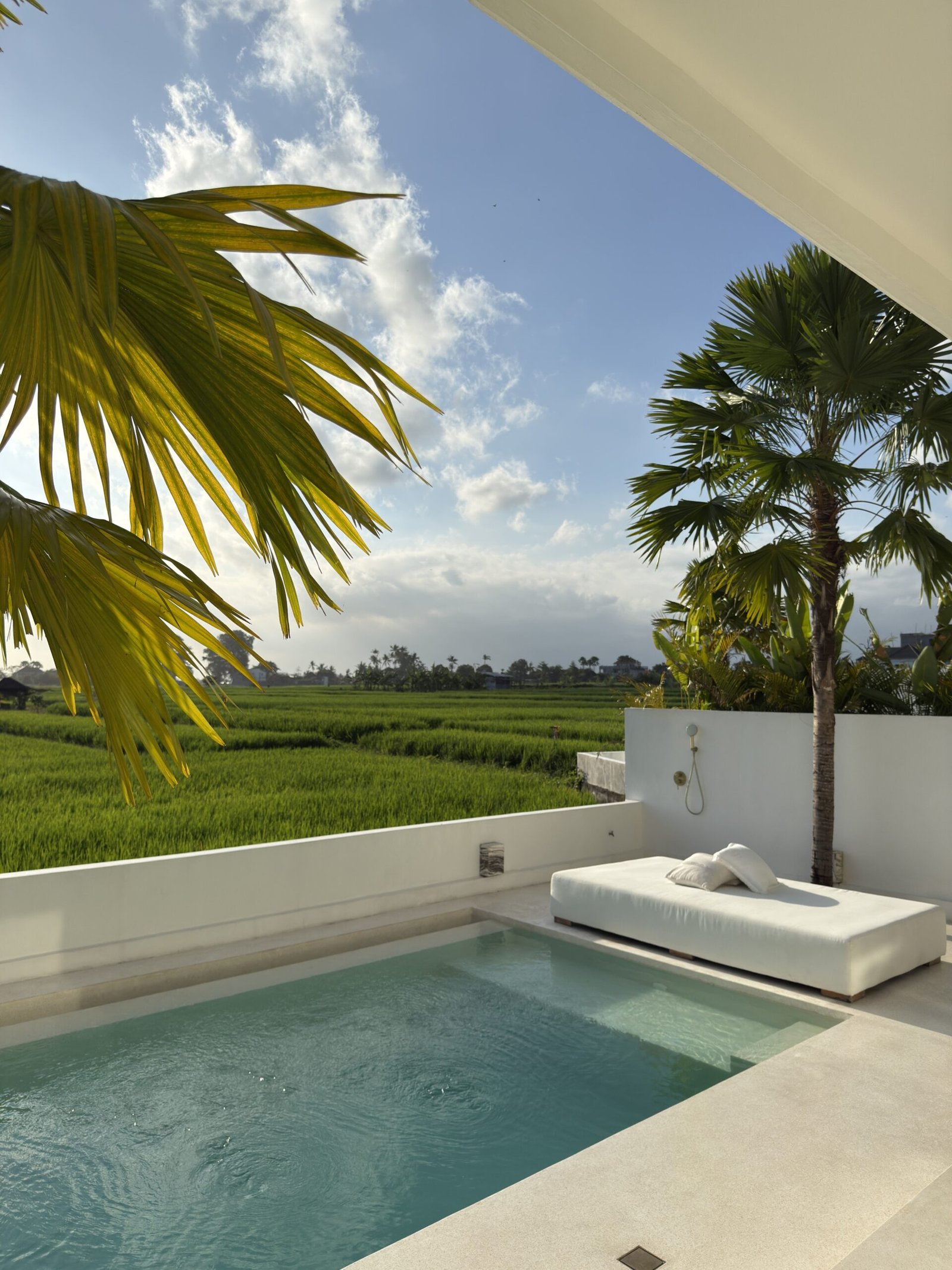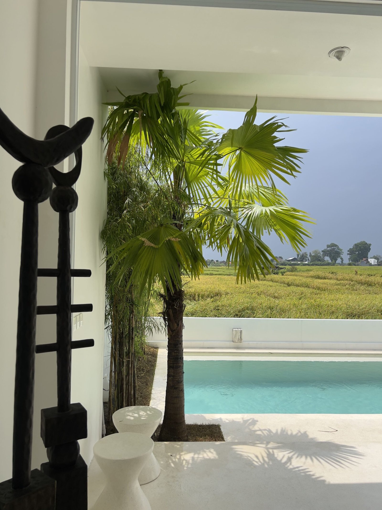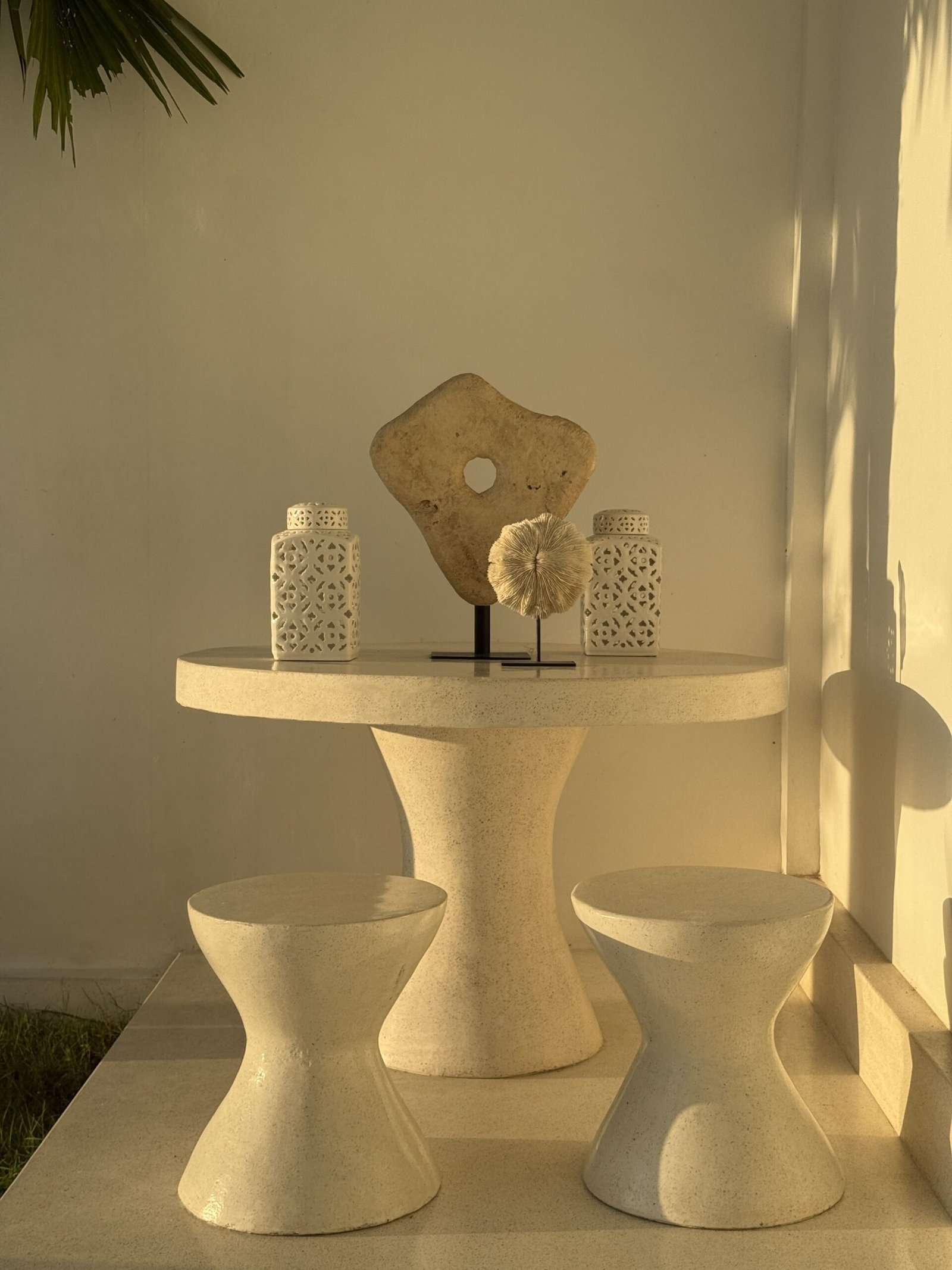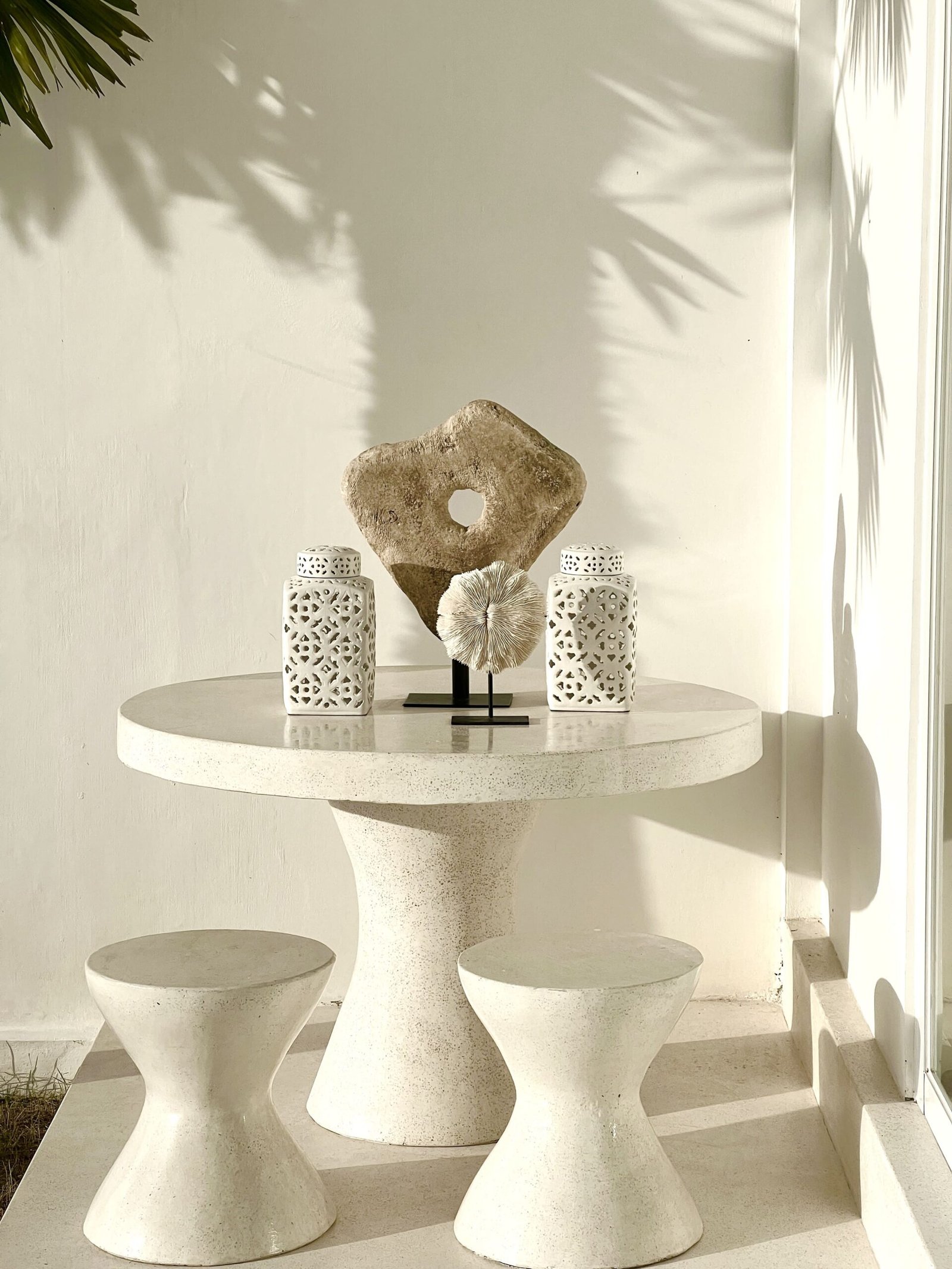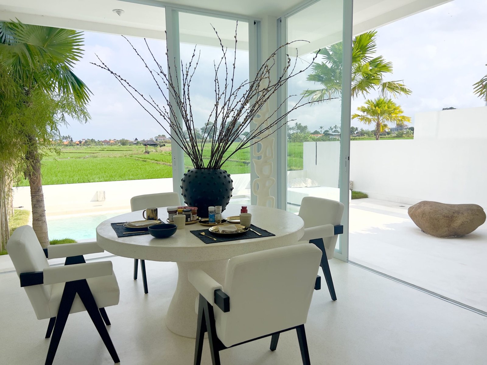 In the living room, the dining room, the stairs, the terrace… even inside the pool. There is only one surface and that is a polished, soft white terrace.
