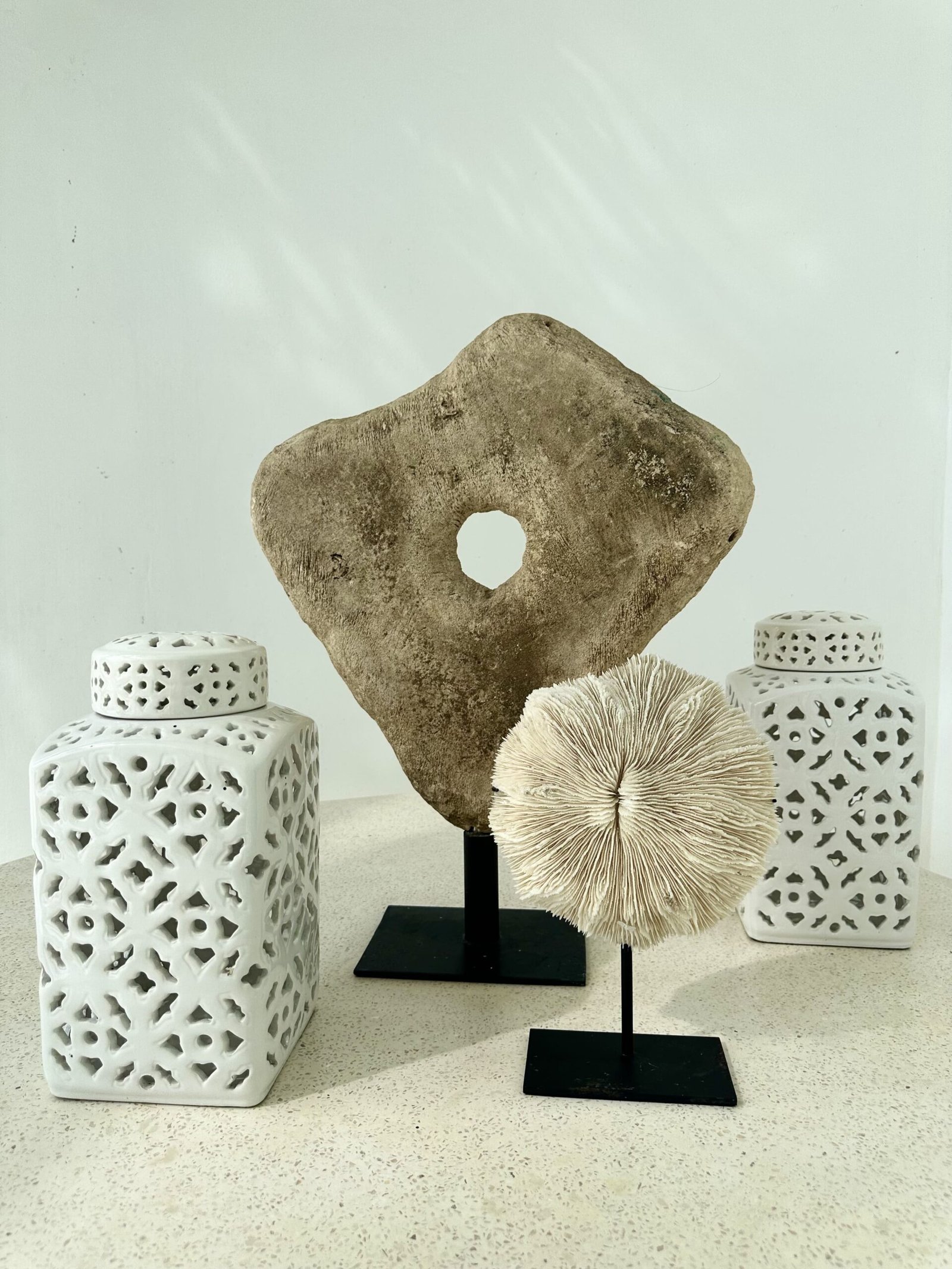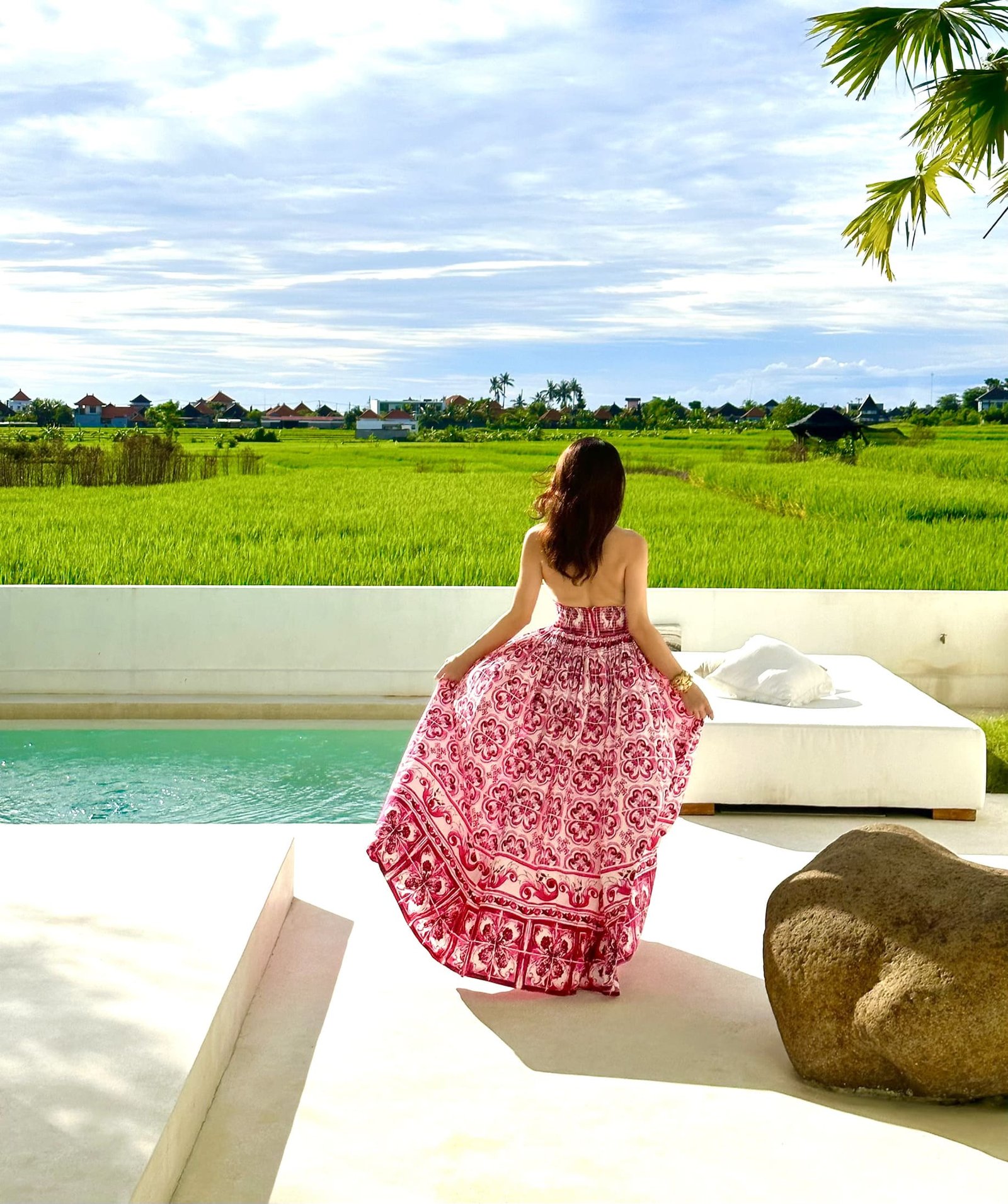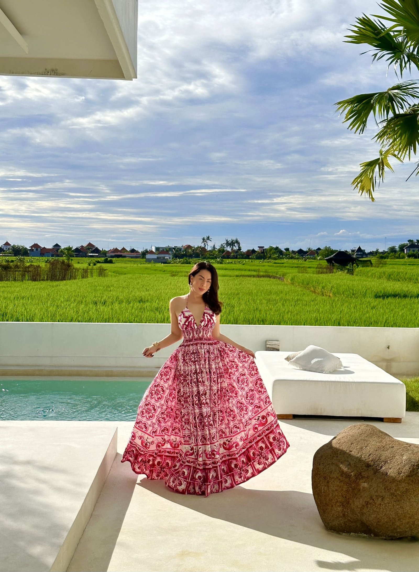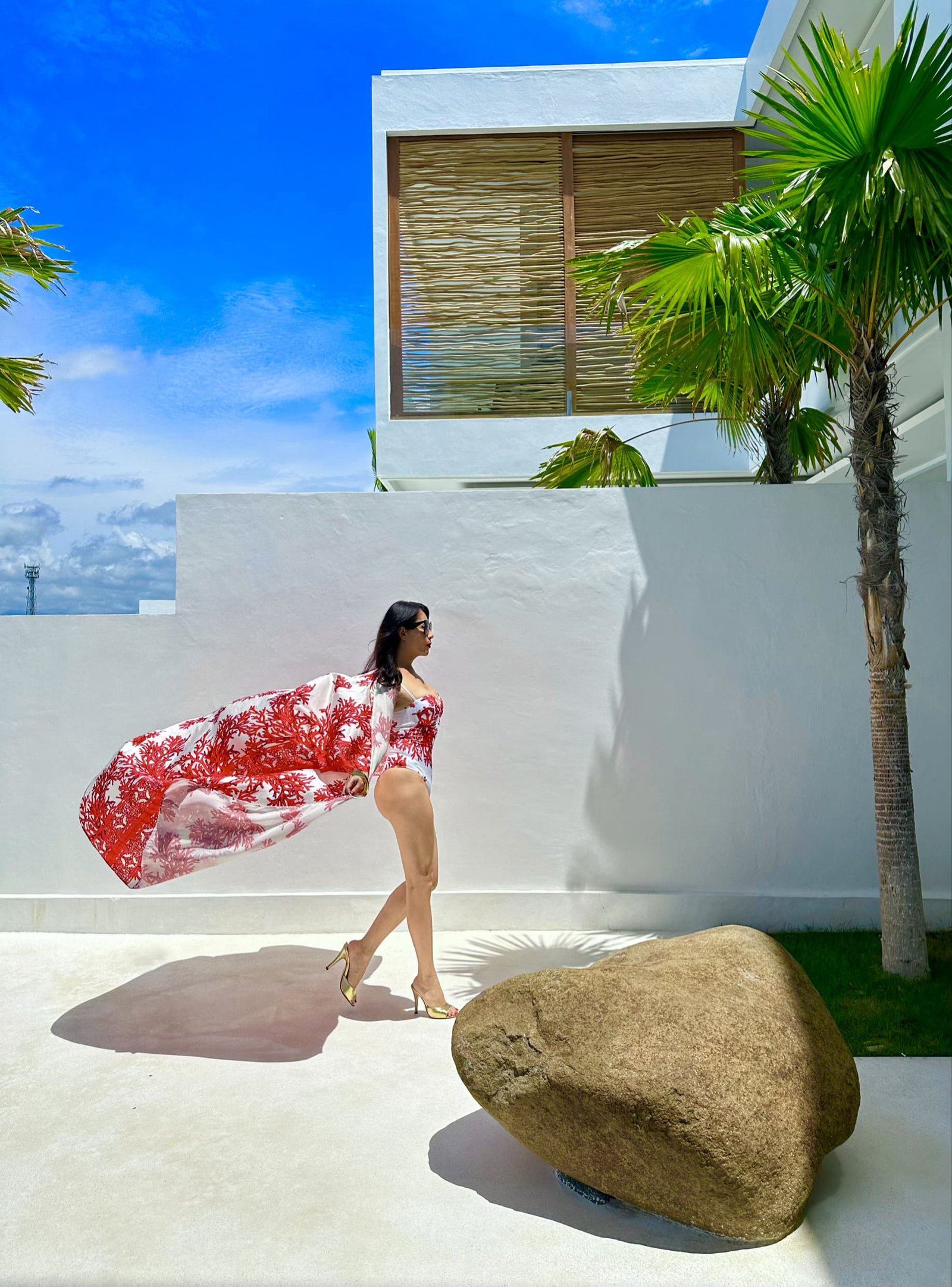 In the living room, the dining room, the stairs, the terrace… even inside the pool. There is only one surface and that is a polished, soft white terrace.